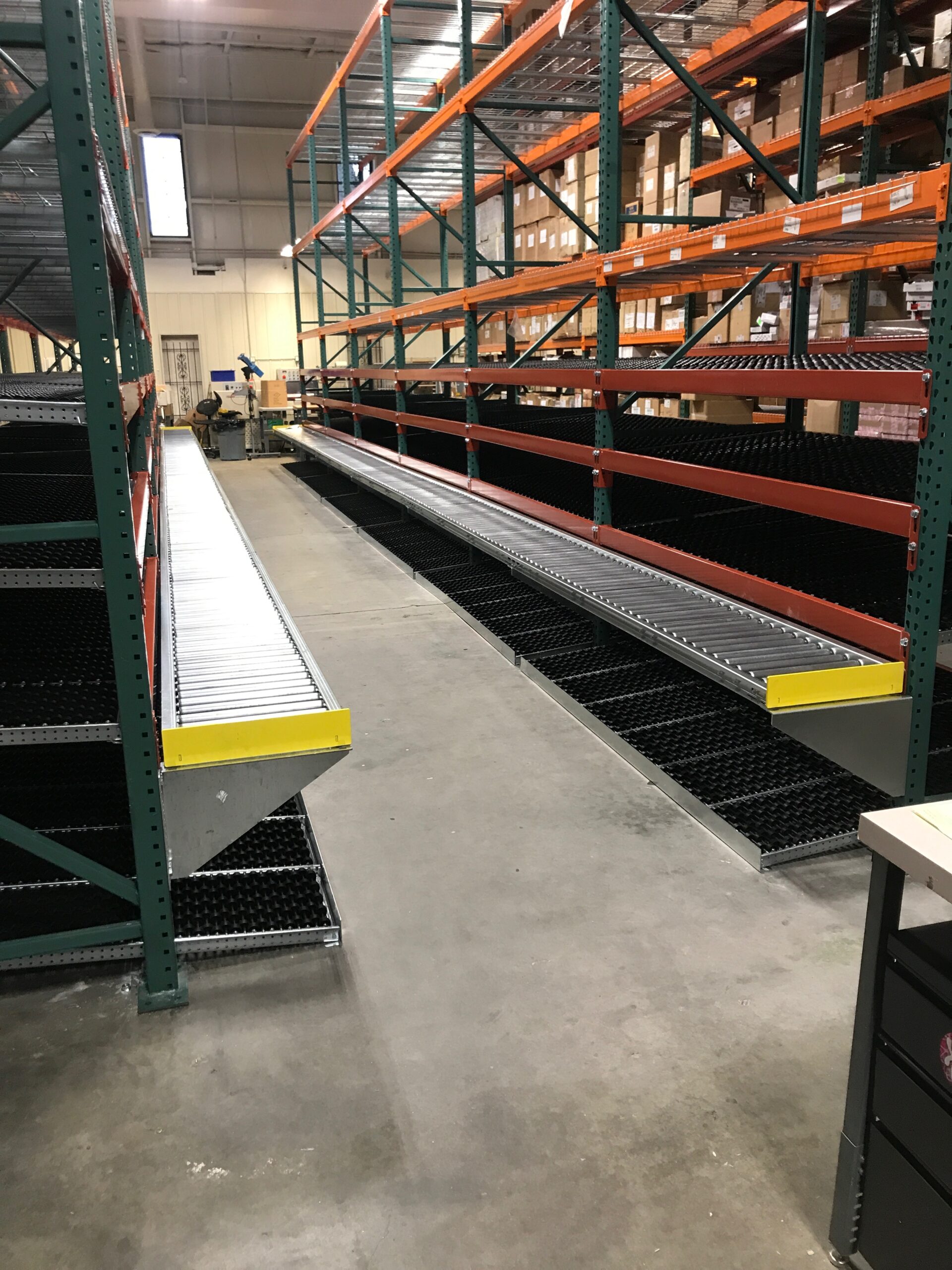A proper implementation of carton flow rack can boost space utilization, organization, and pick speed. We partner with UNEX to create highly efficient carton flow systems for clients looking to better utilize the space in their facility. UNEX’s flagship SpanTrack system can fit in a new or existing pallet rack configuration with a custom configuration designed by our team.